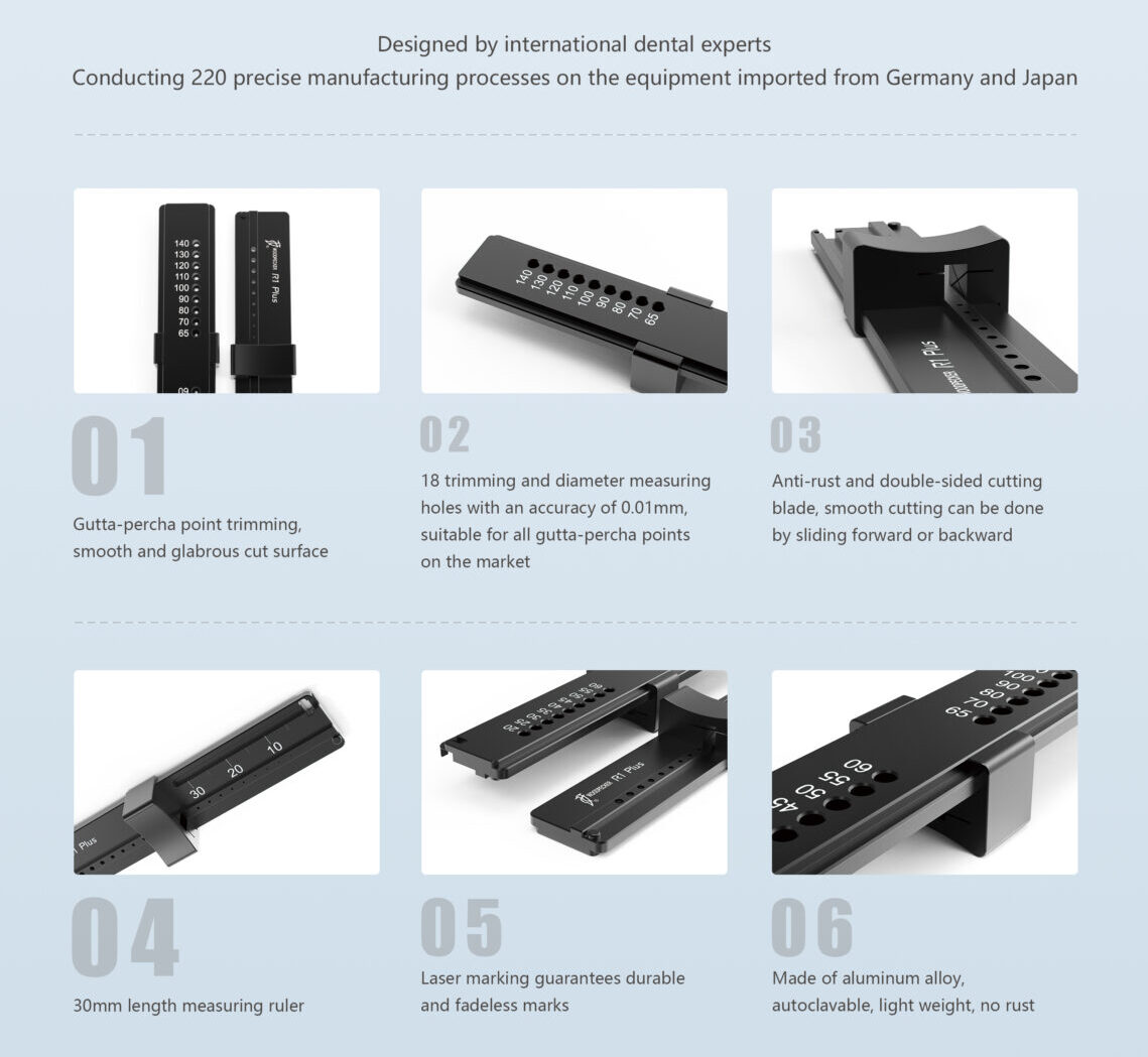 گوتا کاتر دستی ابزاری است که برای برش نوک گوتاپرکا با حداکثر دقت برای درمان های دندانی استفاده می شود. این دستگاه با استفاده از یک دیسک اندازه گیری و یک کالیبراتور برای تنظیم اندازه مورد نیاز دندانپزشک کاربرد دارد.
